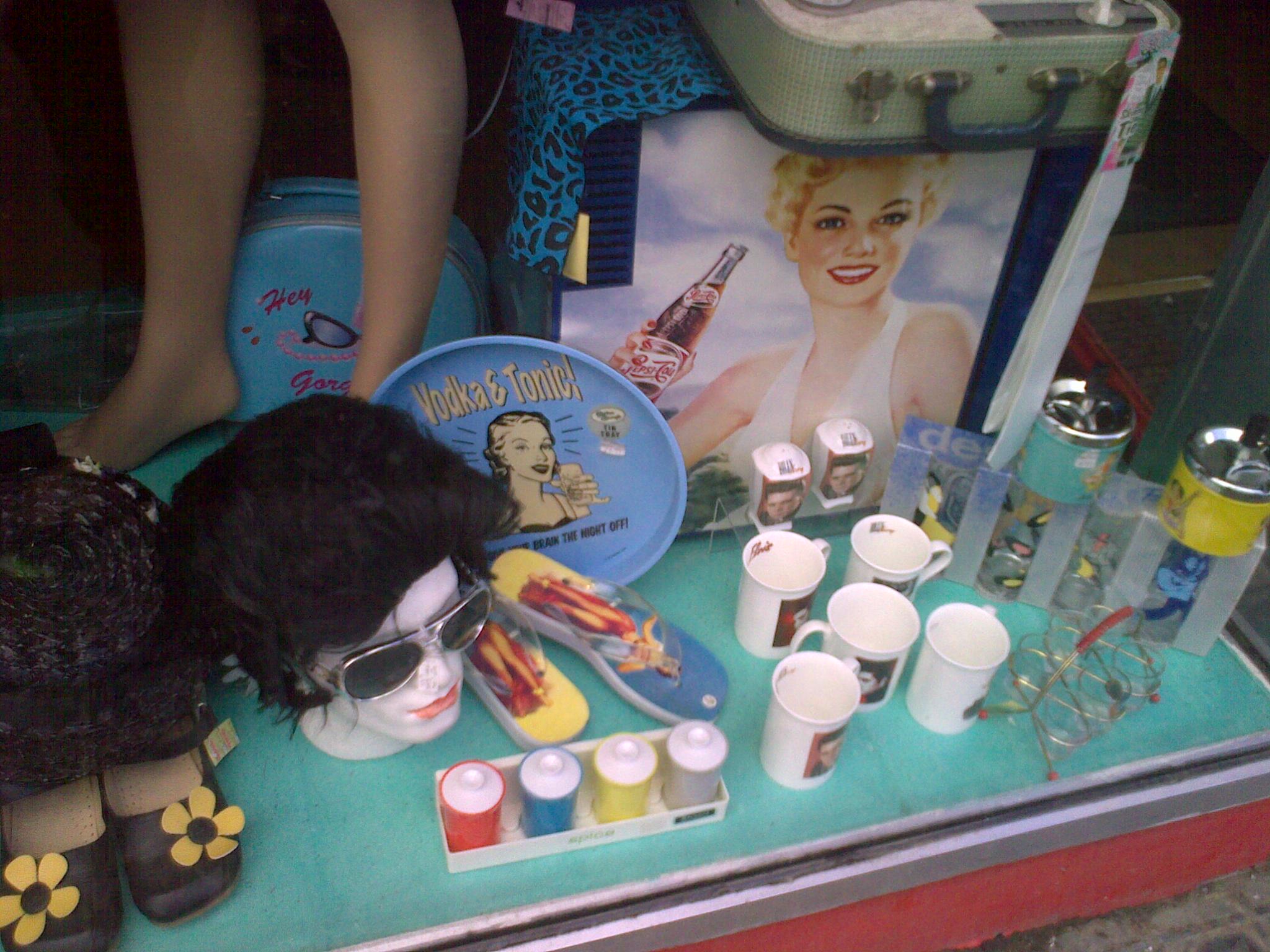 I can be often be found gazing longingly (and looking like a bit of a dummy myself) at designer gear in the windows of Selfridges or Harvey Nics. However when it comes to my fav bit of window dressing nothing can beat the camp and kitsch displays to be found at American Graffitti on Hilton Street, Manchester.