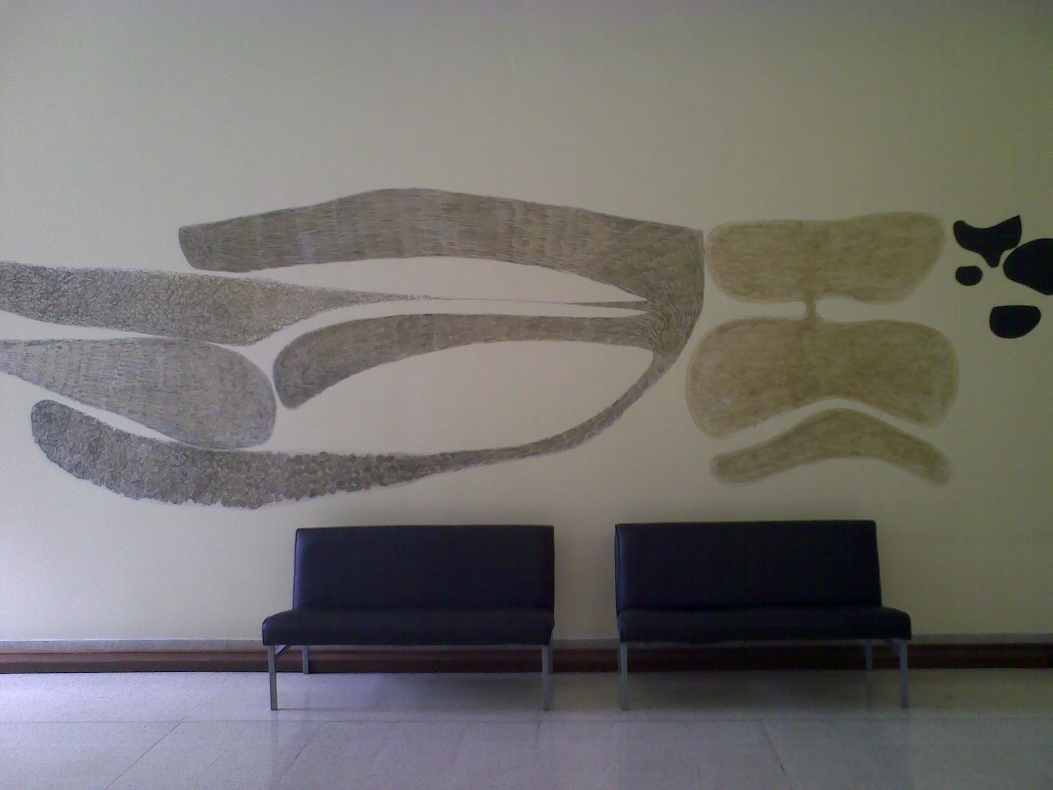 Lurking in the entrance hall on the lower ground floor is a mural by pioneer on British abstract art, Victor Pasmore. This large tiled piece is titled ‘Metamorphosis’ was commissioned under the Edwin Austin Abbey Memorial Trust Fund for Mural Painting in Great Britain 1968 – and dominates the basement of this building.