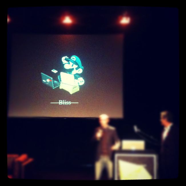 The branding for the event centred on an audience decked out in 3D spectacles, we even got a pair of our very own – I must admit I was a little disappointed nobody wowed us with a presentation in three dimensions… will that be a future development of death by PowerPoint?